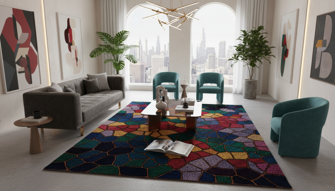 Explore the rise of Neo-Deco rugs in 2026. Discover why sculptural symmetry, metallic tonal weaves, and artisanal textures are replacing minimalism in luxury homes.