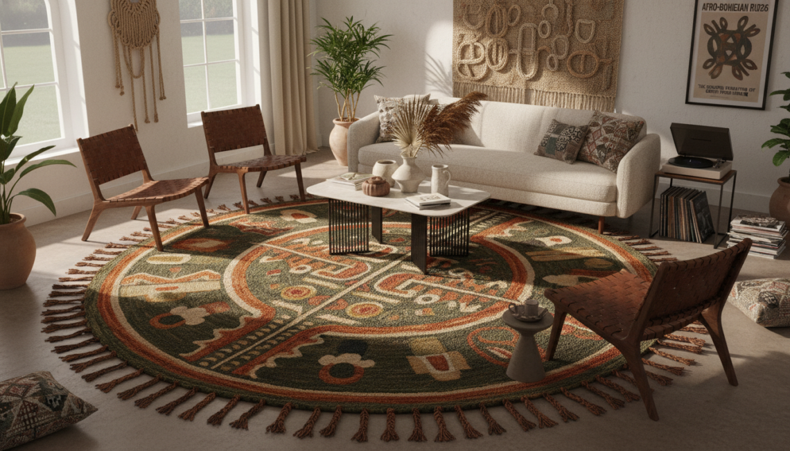 Explore the 2026 rise of Afro-Bohemian rugs. Discover how mineral tones and heritage motifs create 'Art for the Floor' in this definitive interior design report.