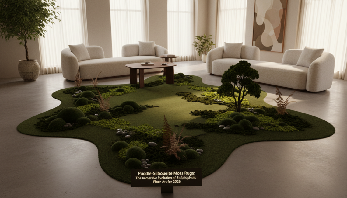 Discover why Puddle-Silhouette Moss Rugs are the defining floor art of 2026. Explore styling tips, biophilic benefits, and the rise of healing boho havens.