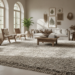 If your design vision includes a cream or white sofa but your reality includes a Golden Retriever, performance is your only path. To ensure the rug doesn’t look “flat” against luxury upholstery, look for multi-tonal yarns. A performance rug that uses three different shades of beige will always look more expensive and hide more debris than a solid-color synthetic.