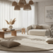 Because Limestone-Infused Fiber Rugs 2026 possess an inherent structural rigidity, they define zones better than almost any other material. In an open-concept loft, a mineral-infused rug acts as a “soft plinth” for furniture. It doesn’t just sit on the floor; it commands the space around it. To enhance this, avoid overcrowding the rug with heavy, solid-to-the-floor sofas. Opt for “floating” furniture—mid-century modern frames or brutalist stone coffee tables with thin legs—that allow the rug’s unique texture to breathe across the entire floor plan.